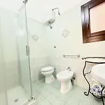 I badrummet finns även en bidé, en separat toalett och en dusch. Det finns också hårtorkar.